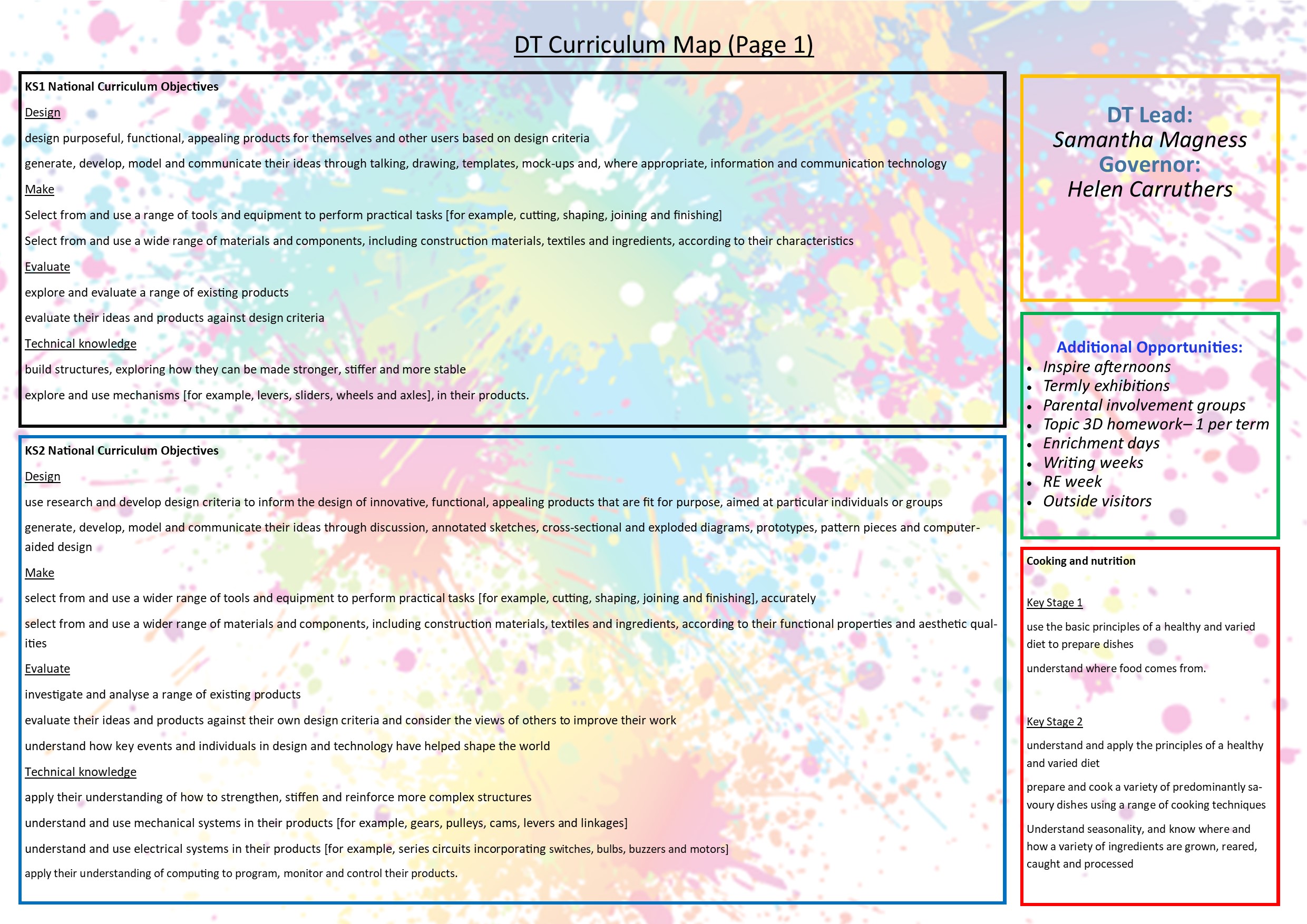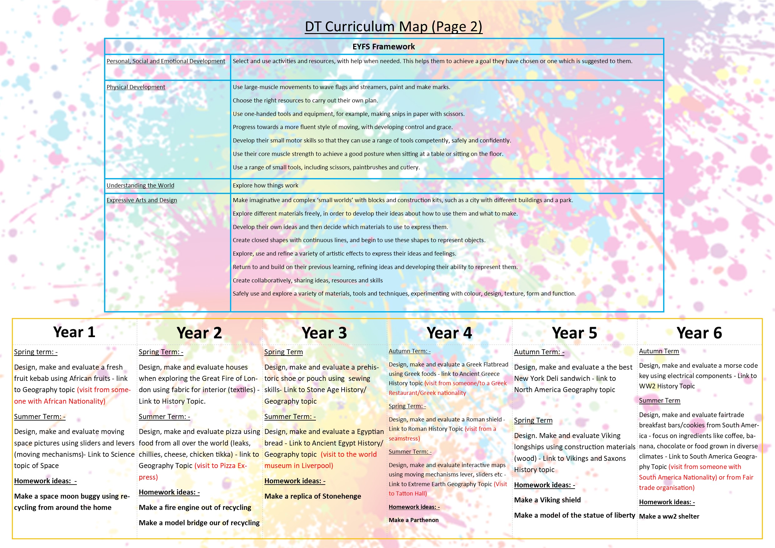 In DT we follow a broad and balanced curriculum. DT knowledge and skills are taught and developed through a wide range of activities and practical hands-on experiences to enhance children's understanding and broaden their knowledge.